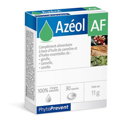 Azeol AF jest suplementem diety opracowanym na bazie oleju z lnicznika siewnego (Camelia sativa) i specjalnej kompozycji olejków eterycznych z goździka, cynamonu i nasion marchwi. Zastosowany w produkcji, opatentowany proces Quality Silver, gwarantuje maksymalną jakość i trwałość oleju w okresie przydatności do spożycia.