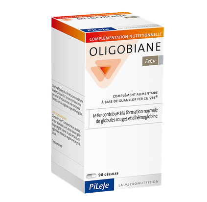W przewodzie pokarmowym miedź jest kofaktorem absorpcji żelaza w enterocycie. W razie braku miedzi lub w trakcie zaburzenia równowagi między żelazem i miedzią na korzyść żelaza, jest ono akumulowane w enterocycie i nie jest transportowane do krążenia ogólnego. Oligobiane FeCu dostarcza żelaza i miedzi w opatentowanej postaci Guanylor FeCu®.